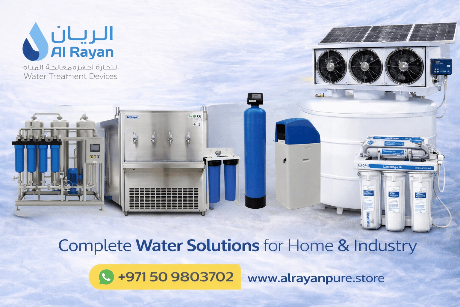 Alrayan Water Treatment – Complete & Best Water Treatment & Cooling Solutions in UAE/GCCAlrayan Water Treatment is a leading water treatment company in the UAE, providing advanced water filtration, purification, and cooling solutions for residential, commercial, and industrial applications. We specialize in delivering high-quality, reliable, and cost-effective systems designed to ensure clean, safe, and temperature-controlled water across Dubai, Sharjah, and the entire UAE.Our expertise includes whole house water filtration systems, reverse osmosis (RO) plants, demineralized (DM) water plants, and DM water supply services for industrial and commercial use. We also provide water softeners, multimedia filtration systems, and UV water purifiers to remove impurities, chemicals, and harmful contaminants from water.In addition to water treatment, we offer tank cooling systems, water chillers, and customized cooling solutions to maintain optimal water temperature, especially for villas, buildings, and industrial facilities in the UAE’s hot climate.Alrayan Water Treatment uses premium components and globally trusted brands to ensure durability, efficiency, and long-term performance. Our team provides expert consultation, installation, maintenance, and after-sales support to guarantee maximum customer satisfaction.Our Products & Services Include:1. Whole house water filtration systems (for villas & apartments) 2. Reverse Osmosis (RO) systems & RO plants 3. Demineralized (DM) water plants 4. DM water supply for industrial use 5. Water softeners 6. Multimedia filtration systems 7. UV water purifiers 8. Tank cooling systems (for villas & buildings) 9. Water chillers & cooling solutions 10. Commercial & industrial water treatment plants 11. Annual maintenance contracts (AMC) & filter replacementsChoose Alrayan Water Treatment for clean, safe, and efficiently managed water solutions in the UAE, backed by professional service and trusted expertise.